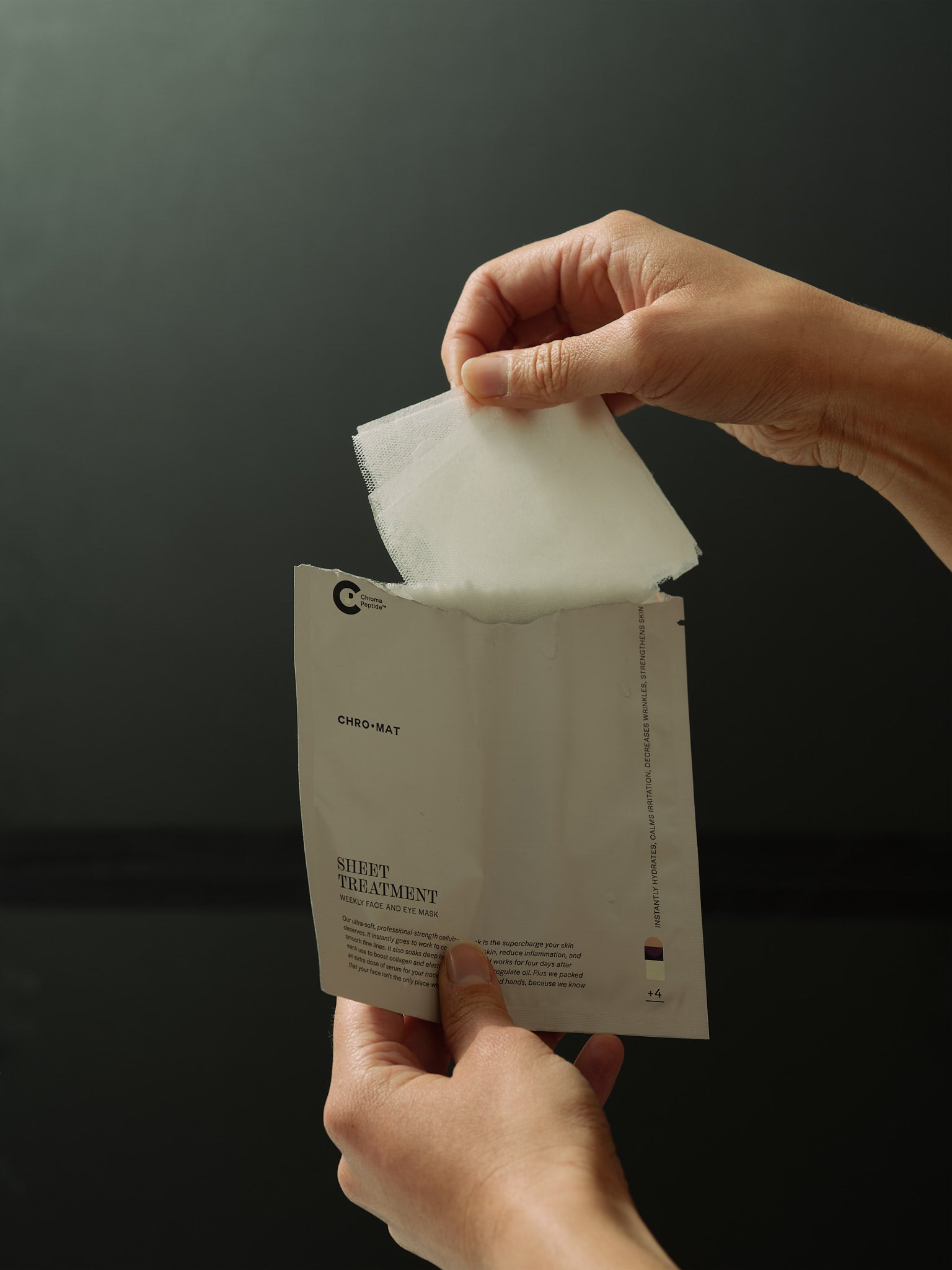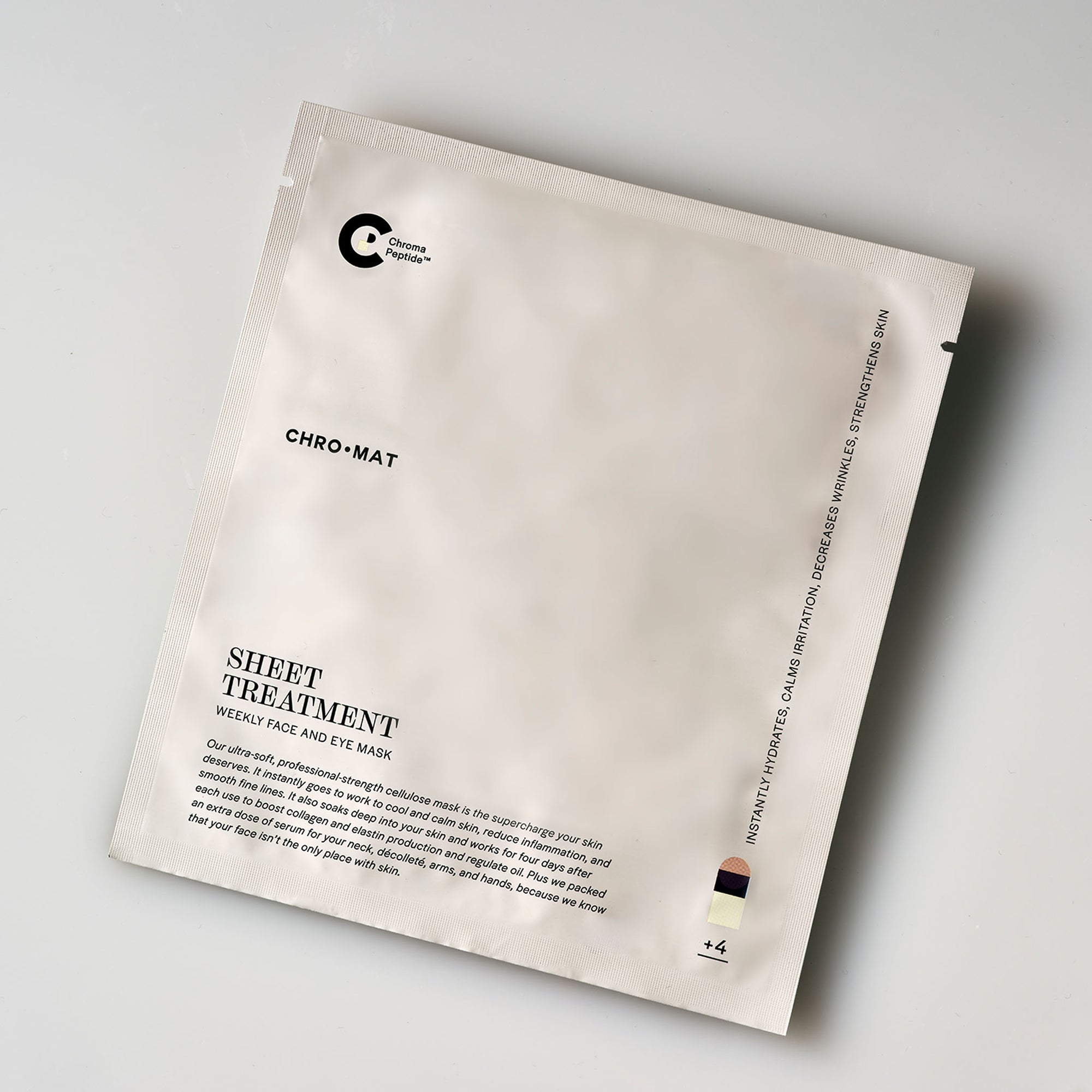 This silky lyocell sheet mask is formulated to support pre- and post-procedure skin with a contoured design for application to the face and skin around the eyes. Powered by Chroma Peptide®, this treatment activates skin to naturally repair and protect itself. The skin affinity technology provides optimal absorption of treatment serum to support the skin’s barrier function and help facilitate repair.